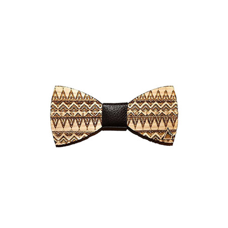 Papillon particolare in legno con incisione laser di texture fantasia triangoli con nodo in pelle. Fatto a mano per look ricercati e contemporanei. Provalo!