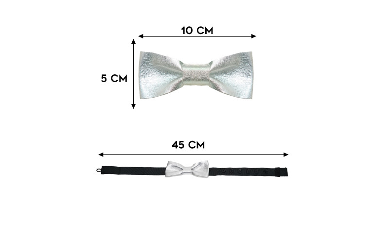 Realizzato a mano questo meraviglioso papillon in vera pelle argento laminata per avere un stile elegante, classico e senza tempo. Il colore argento lo rende perfetto per tutte le occasioni adatto a qualsiasi outfit.
